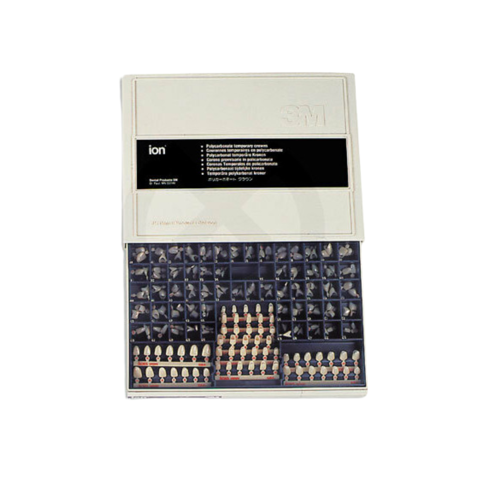 Couronnes provisoires ION 3M en polycarbonate renforcé, souples, esthétiques et faciles à ajuster pour restaurations temporaires antérieures et prémolaires....